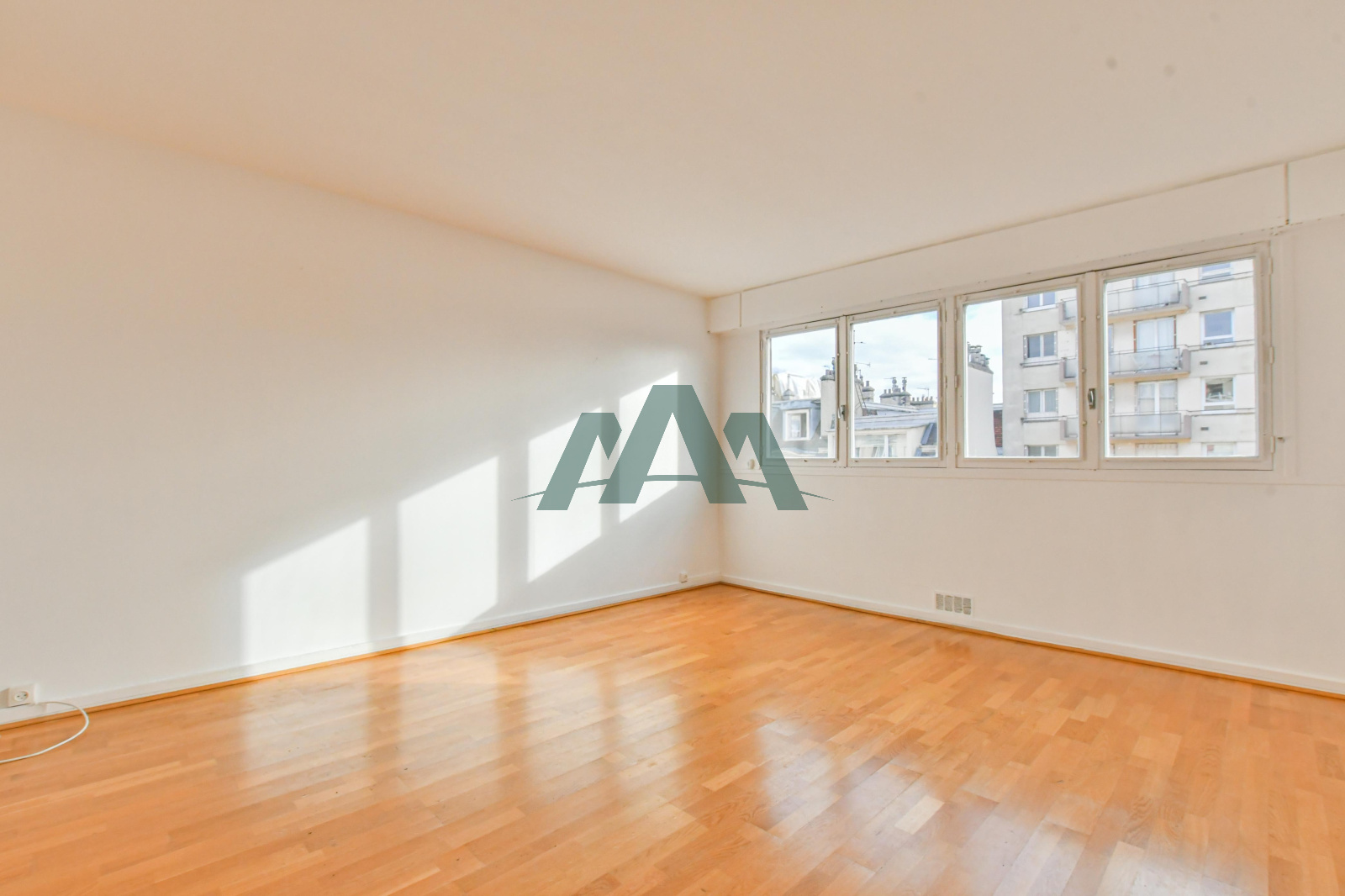 - une spacieuse pièce de vie baignée de lumière, avec parquet au sol